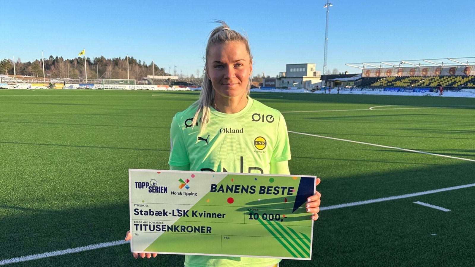 I samarbeid med Toppserien og Norsk Tipping ble Amanda Johnsson Haahr kåret til banens beste mot Stabæk i helgens 0-0-kamp på AJ Arena. I den forbindelse skal det deles ut 10.000,- til en breddeklubb som Amanda selv velger ut.