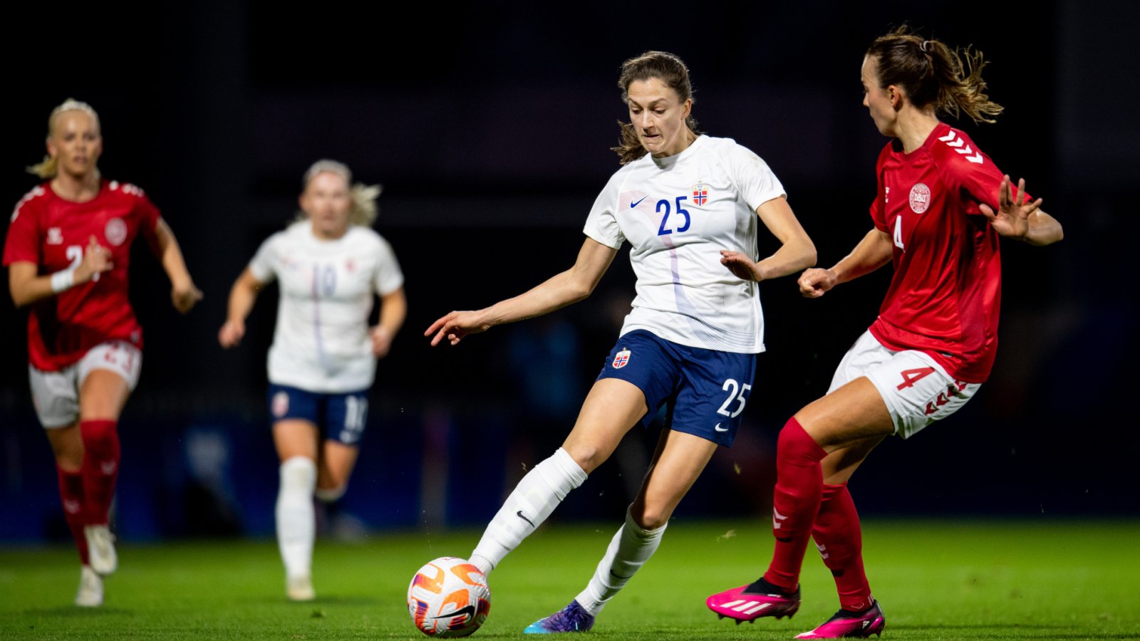 -Danmark 2-0 Norge: Emma startet kampen og ble byttet ut til pause for Norge mot Danmark i kampen som dessverre endte i tap.