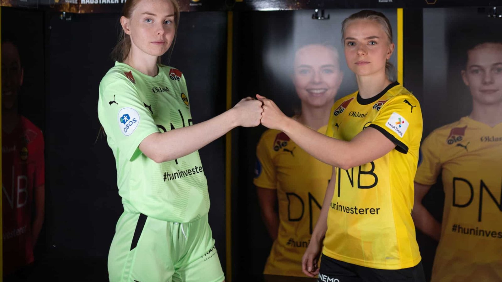 Malin Brenn (f. v.) og Emilie Woldvik viser stolt frem årets borte- og hjemmedrakter fra Puma. Draktene lanseres i samarbeid med Forza Fugla, og de er tilgjengelig i deres nettbutikk. Bestill din drakt her!